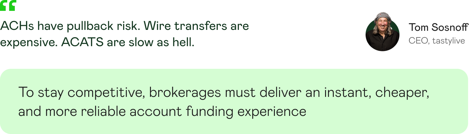 The data is clear; today’s traders operate in a 24/7, global market where news creates in-the-moment investment opportunities, but traditional funding rails can’t keep up.